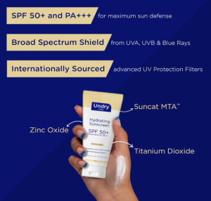 The American Academy of Dermatology recommends broad-spectrum SPF 30+ daily. With SPF 50 PA+++, Undry exceeds this, making it a trusted minimalist sunscreen backed by dermatology science.